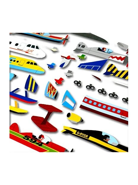 Une boîte métal contenant 100 gommettes d’avions, pour jouer et assembler en s’amusant.