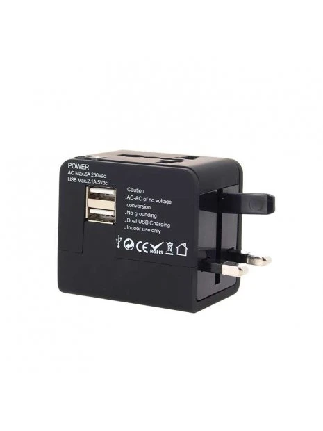 Adaptateur de voyage international universel tout-en-un, avec double port de charge USB compatible avec les dispositifs USB, pour les USA, le Royaume-Uni et l’Australie.