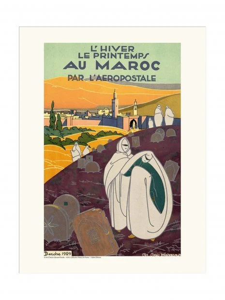 Ajoutez du cachet à votre pièce avec cette reproduction de l’affiche publicitaire de l’Aéropostale intitulée « L’hiver le printemps au Maroc » !