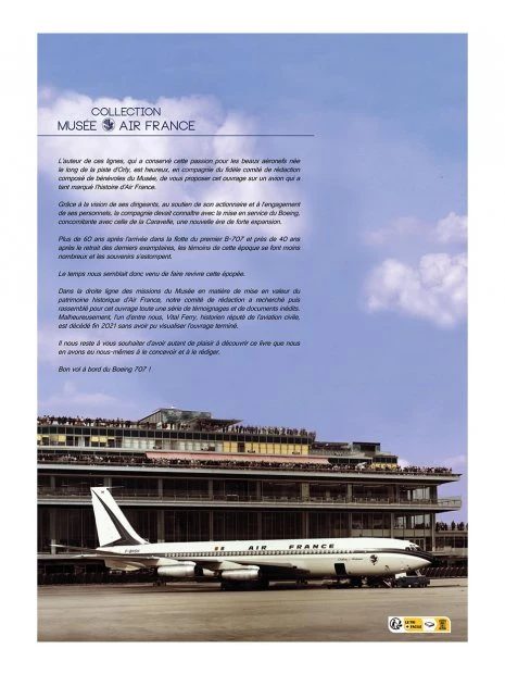Plus de 60 ans après l’arrivée dans la flotte du premier B-707 et près de 40 ans après le retrait des derniers exemplaires, les témoins de cette époque se font moins nombreux et les souvenirs s’estompent. Le temps nous semblait donc venu de faire revivre cette épopée. Dans la droite ligne des missions du Musée en matière de mise en valeur du patrimoine historique d’Air France, notre comité de rédaction a recherché puis rassemblé pour cet ouvrage toute une série de témoignages et de documents inédits. Malheureusement, l’un d’entre nous, Vital Ferry, historien réputé de l’aviation civile, est décédé fin 2021 sans avoir pu visualiser l’ouvrage terminé.