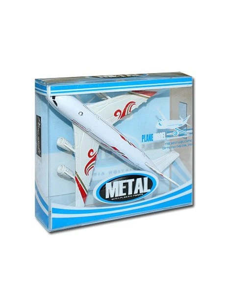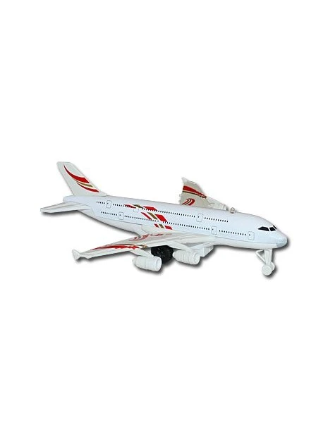 Cet avion de ligne en métal, sonore, lumineux et à friction, fonctionne avec deux piles bouton AG13 incluses.