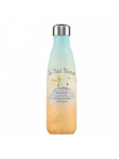 Une bouteille isotherme à l’effigie du Petit Prince assis sur sa planète en face de sa rose avec la célèbre citation « On ne voit bien qu’avec le cœur, l’essentiel est invisible pour les yeux. »