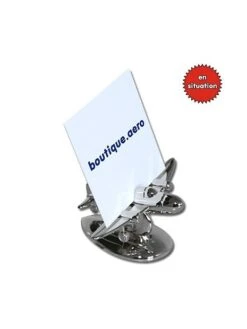 Support Cartes De Visite En Métal Argenté Avec Avion Au Décollage Et Dérive