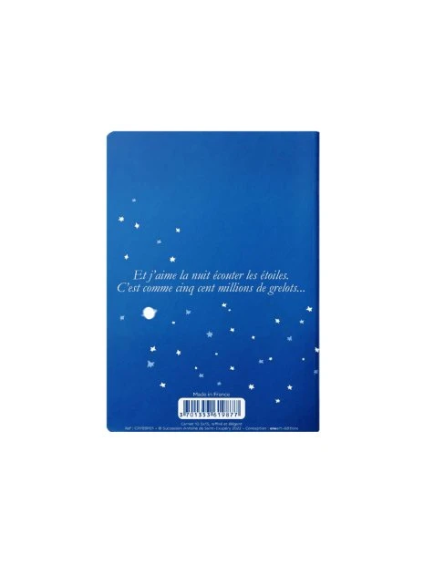Ce splendide carnet d’un bleu profond lie le pratique à l’esthétique : faisant figurer le Petit Prince dans son avion, survolant un ciel étoilé, vous pourrez y consigner vos notes de voyage, vos pensées, les évènements marquants que vous voulez consigner… ou tout simplement des mémos ou des listes de course !