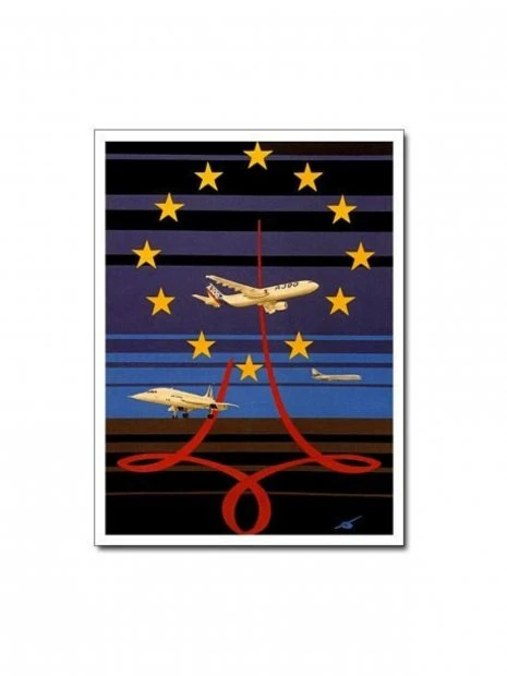 Carte postale reproduisant une oeuvre aéronautique du collagiste Jean-Pierre CONDAT.