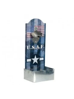 L’ouvre-bouteille a un décapsuleur en métal et un plateau en métal pour recueillir les bouchons.