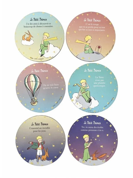 Pour embellir votre table ou offrir à un proche passionné par l’univers enchanteur du Petit Prince, ce lot de 6 dessous de verre est idéal ! Chaque pièce présente une illustration charmante et une citation célèbre tirée du conte d’Antoine DE SAINT EXUPÉRY.