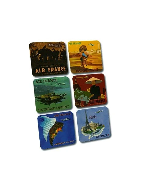Ce lot de 6 dessous de verre représente des affiches Air France.
