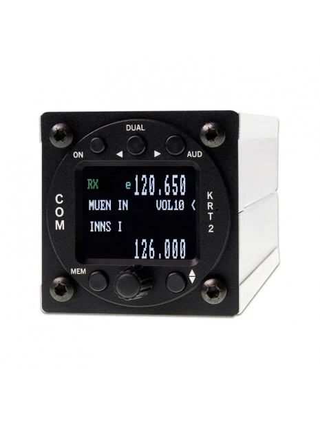 Le KRT2 est disponible en quatre formats : une version standard pour un montage dans une découpe de 57 mm / 2¼” de diamètre, un format empilé de 6¼” ou en mini-format paysage ou portrait. Grâce à sa faible longueur de boîtier, il est facile à installer, même dans les cockpits à espace confiné. Pour une utilisation mobile, comme en montgolfière, l’émetteur-récepteur radio est également disponible en tant que station portable – idéalement en combinaison avec le transpondeur KTX2 Mode-S.
