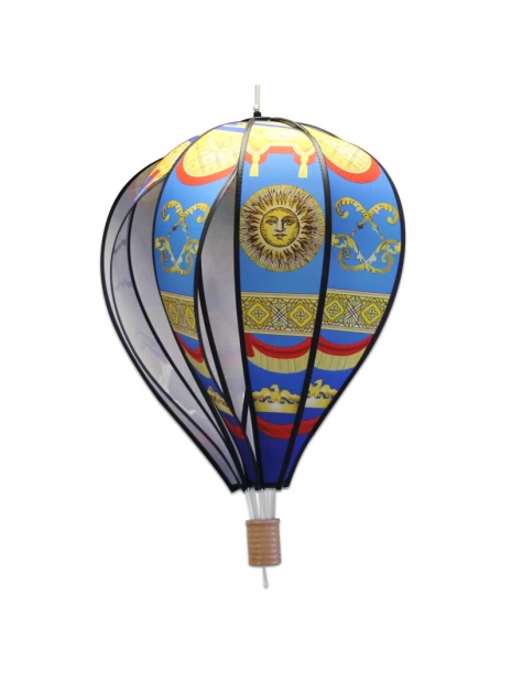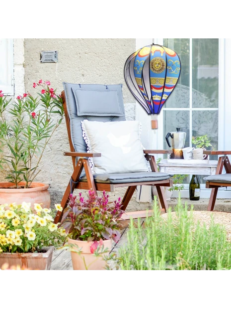 Girouette décorative à suspendre représentant une montgolfière pour l’extérieur. Le vent fait tourner la roue et l’ensemble pivote sous l’effet du courant d’air !
