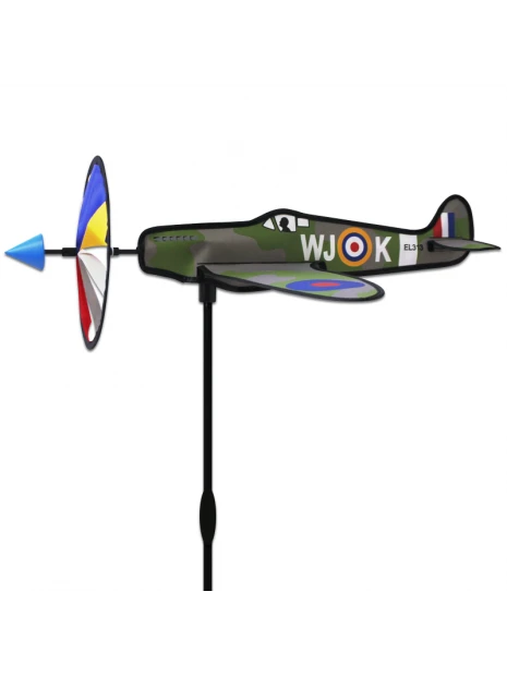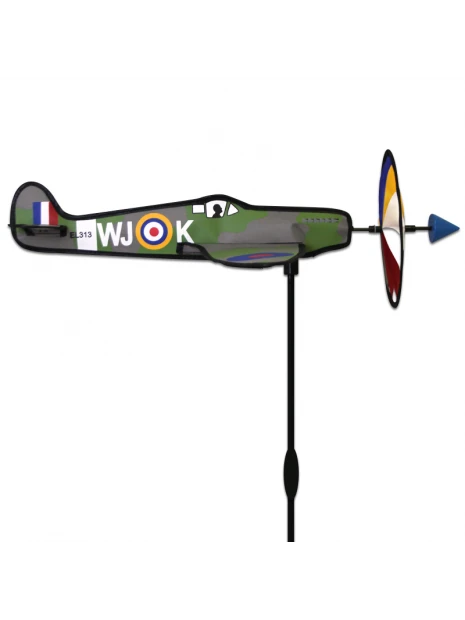 Girouette décorative représentant un Spitfire pour l’extérieur. Le vent fait tourner la roue et l’ensemble pivote sous l’effet du courant d’air !