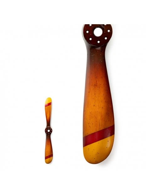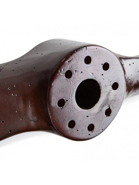 Il fut un temps où le vol n’était qu’une affaire de bois et de toile, et s’accomplissait avec une poignée à tirer et quelques jauges à vérifier. Les hélices en bois étaient remplacées aussi souvent que les pneus et les vieilles hélices étaient généralement ramenées à la maison pour être transformées en souvenirs, comme une horloge par exemple. Notre assortiment d’artefacts des premiers vols remonte à l’époque où les pionniers conquéraient les airs. Toutes les hélices sont sculptées dans le bois, vieillies et finies avec une patine vieillie et lisse. Une décoration d’intérieur fascinante.