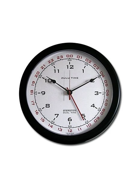 Horloge murale au design sobre avec heure UTC. Cadran blanc.