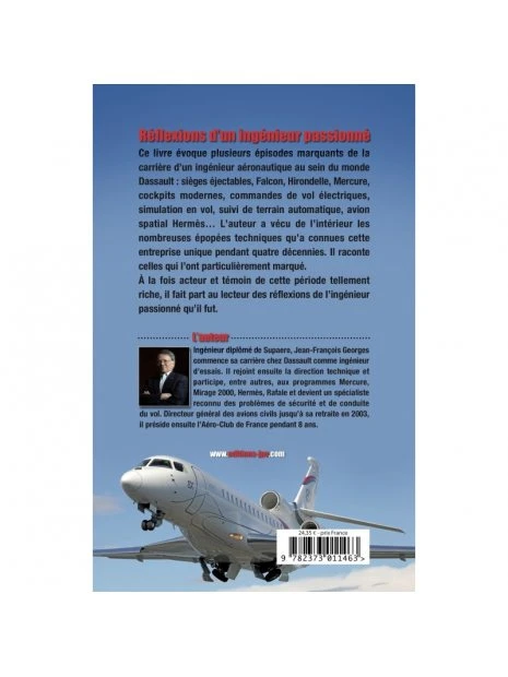 Ce livre évoque plusieurs épisodes marquants de la carrière d’un ingénieur aéronautique au sein du monde Dassault : sièges éjectables, Falcon, Hirondelle, Mercure, cockpits modernes, commandes de vol électriques, simulation en vol, suivi de terrain automatique, avion spatial Hermès… L’auteur a vécu de l’intérieur les nombreuses épopées techniques qu’a connues cette entreprise unique pendant quatre décennies. Il raconte celles qui l’ont particulièrement marqué.