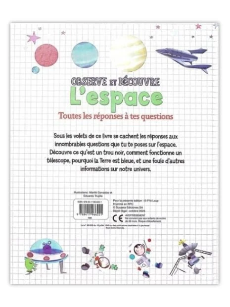 Sous les plus de 50 volets de ce livre se cachent les réponses aux innombrables questions que tu te poses sur l’espace. Découvre ce qu’est un trou noir, comment fonctionne un télescope, pourquoi la Terre est bleue, et une foule d’autres informations sur notre univers.