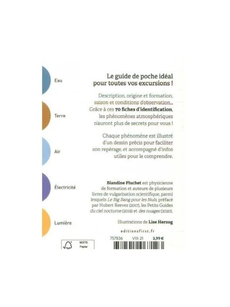 Ce petit guide vous invite à comprendre et observer les phénomènes météorologiques pour en comprendre tous les mystères. Partez à la découverte du givre, de la rosée, des éclairs, des feux de Saint-Elme, des murs de poussières, des halos solaires ou encore des tempêtes et du Mistral ! Tout un monde que l’on côtoie tous les jours et qui recèle de nombreux secrets.
