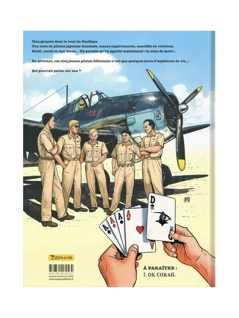 Cinq copains pilotes se retrouvent sur une base avancée du Pacifique. Ils sont jeunes et inexpérimentés. Ils pensent qu’on va les intégrer progressivement dans la grande bataille, et ils ont une vision plutôt naïve de ce qu’est la guerre sous les tropiques. Ils vont très vite déchanter : dès leur arrivée dans la « zone de mort », ils sont attaqués par des chasseurs japonais.