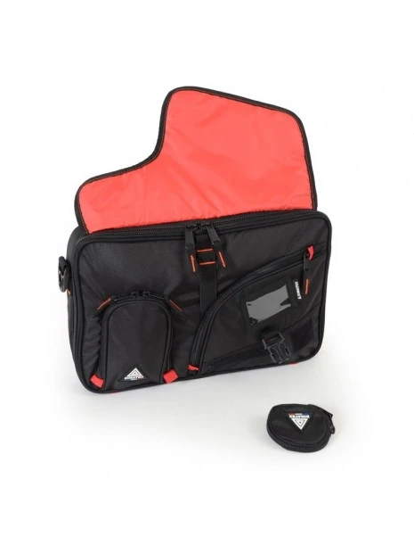 – 1 petite pochette amovible pouvant se porter à la ceinture ou sur une bandoulière (monnaie, clefs, clef USB, …)