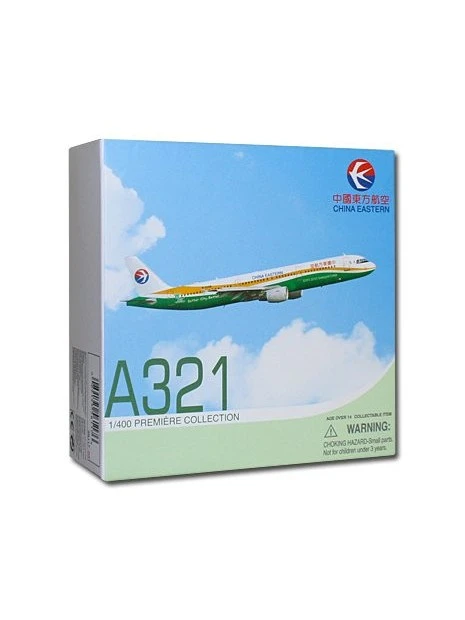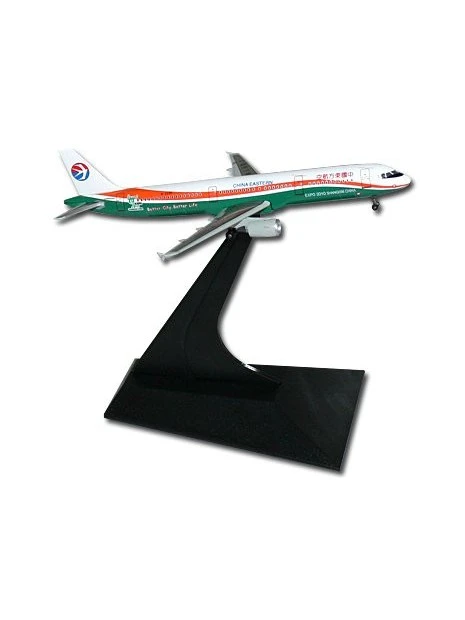 Maquette métal Dragon Wings, au 1/400e, d’un Airbus A321-211 de la compagnie China Eastern Airlines avec socle et train d’atterrissage sorti.