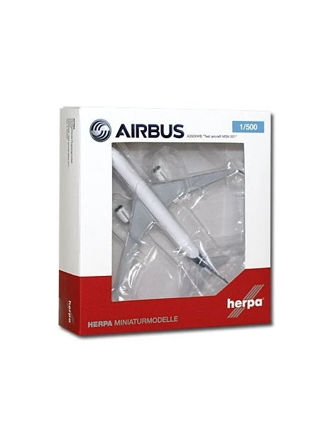 Maquette métal Herpa, au 1/500e, de l’A350 XWB prototype 001 d’Airbus.