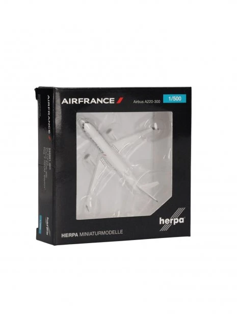 Découvrez cette maquette en métal de la marque Herpa, qui est une reproduction fidèle de l’Airbus A220-300, aux couleurs d’Air France.