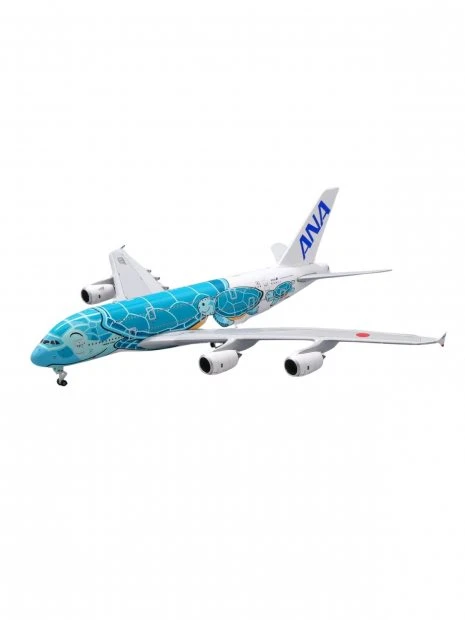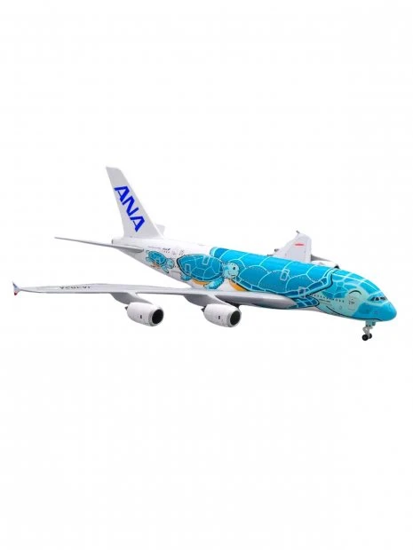 Cette maquette en métal représente l’avion baptisé « Kai » de la compagnie aérienne ANA. Sa livrée vert émeraude et comportant une tortue marine, évoque instantanément l’océan visible à Hawaï. Chaque détail est minutieusement reproduit, offrant une précision remarquable qui ravira les passionnés d’aviation et de modélisme !