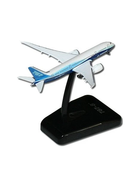 Maquette métal au 1/1000e d’un Boeing 787-8 Dreamliner arborant la nouvelle livrée de l’avionneur américain.