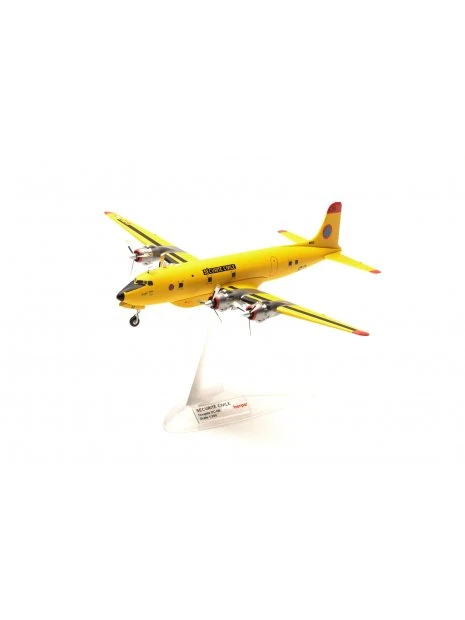À partir de 1980, la Sécurité civile française a acquis quatre DC6B comme avions de lutte contre les incendies, équipés à cet effet d’un réservoir d’eau de 12 000 litres. Après le crash d’un appareil en 1986, les trois bombardiers d’eau restants sont restés en service au sein de la sécurité civile française jusqu’en 1990, date à laquelle ils ont été remplacés par des Lockheed C130 Hercules. L’histoire de l’original de ce modèle remonte à 1956, lorsqu’il est entré en service en tant qu’avion de passagers auprès de la Western Airlines à partir de Los Angeles. De 1962 à 1967, il a fait partie du Special Air Mission Wing des forces armées ouest-allemandes, avant d’être vendu à Air Niger.