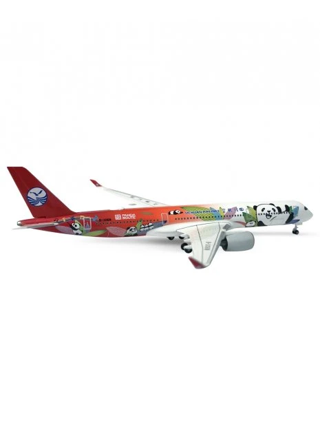 Le B-306N est le deuxième A350 de Sichuan Airlines à transporter des passagers du monde entier vers Chengdu, la capitale de la province du Sichuan et la patrie des pandas, dans la livrée colorée des pandas. Les passagers ne doivent pas seulement être attentifs à ce qui est probablement le spectacle le plus câlin de la ville à l’extérieur, mais aussi dans la cabine : des appuie-tête et des tabliers du personnel de cabine aux desserts en forme d’ours, il est impossible d’éviter le thème du panda.