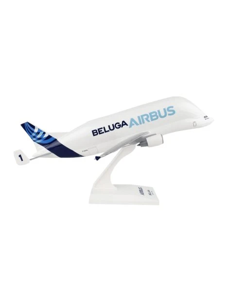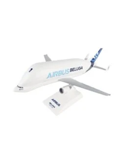 Maquette plastique Airbus, au 1/200e, du Beluga A300-600ST avec un socle blanc.