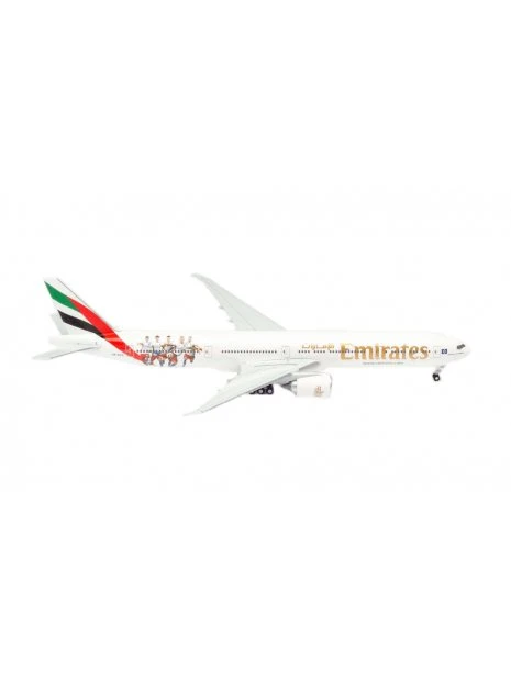 Une maquette Herpa d’un Boeing 777-300ER aux couleurs de la compagnie Emirates mettant le club Hambourg SV à l’honneur.