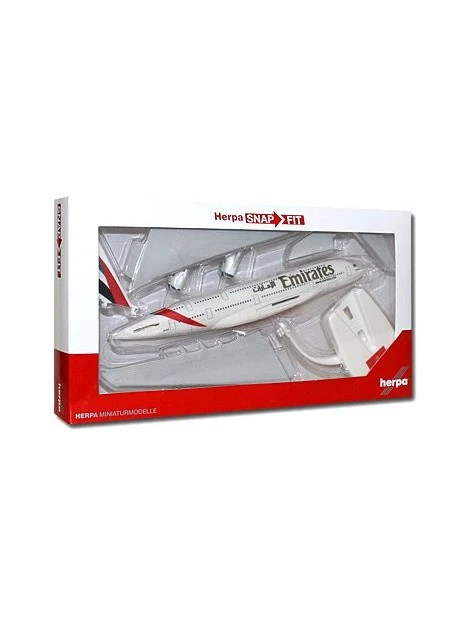 Cette maquette, à l’échelle 1/250e, en plastique, est aux couleurs de la plus importante compagnie aérienne des Emirats Arabes Unis et du Moyen-Orient : La compagnie Emirates !