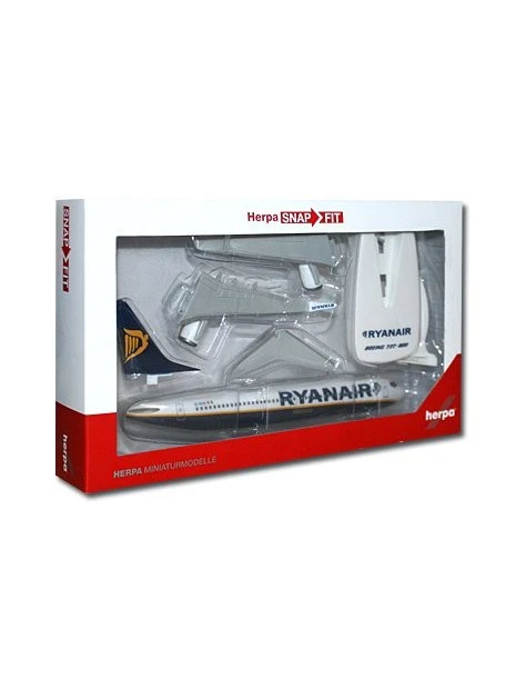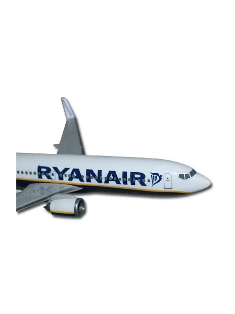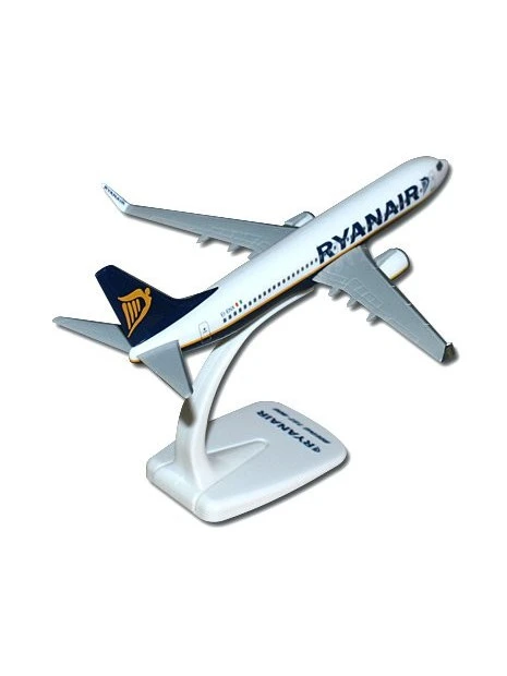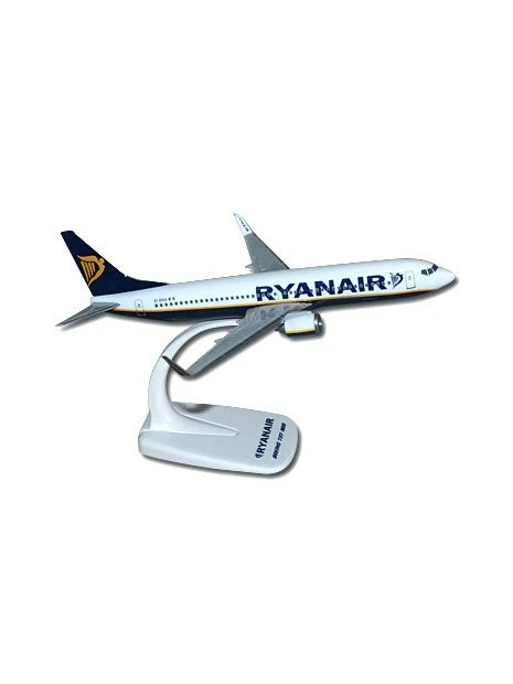 Maquette plastique Herpa, au 1/200e, d’un Boeing 737-800 de la compagnie Ryanair avec socle.