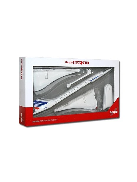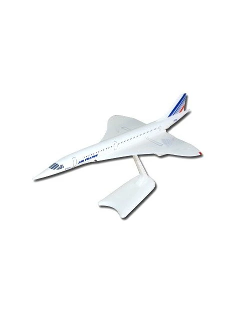 Maquette plastique Herpa, au 1/250e, du Concorde de la compagnie Air France avec socle.