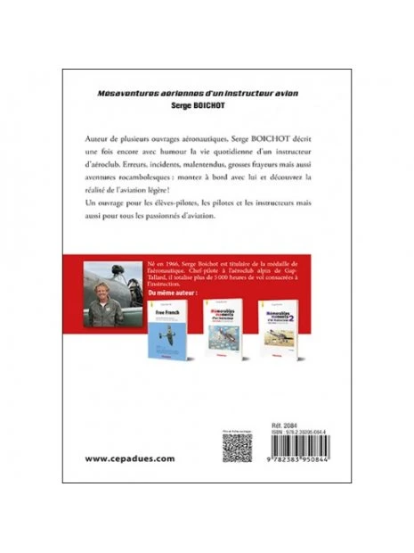 Auteur de plusieurs ouvrages aéronautiques, Serge BOICHOT décrit une fois encore avec humour la vie quotidienne d’un instructeur d’aéroclub. Erreurs, incidents, malentendus, grosses frayeurs mais aussi aventures rocambolesques : montez à bord avec lui et découvrez la réalité de l’aviation légère !