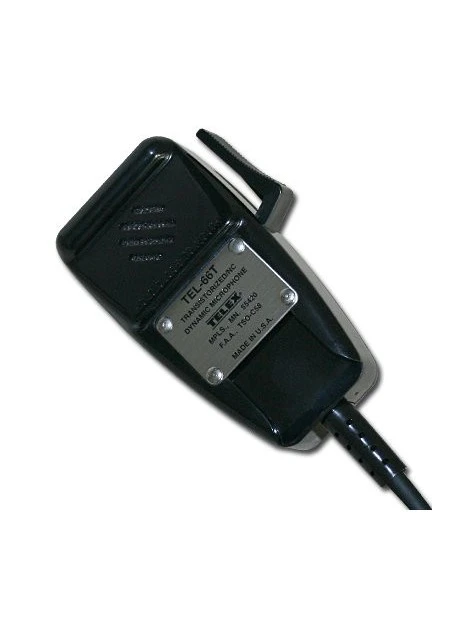 Micro à main avec cordon spirale et jack droit, livré avec son support métallique.