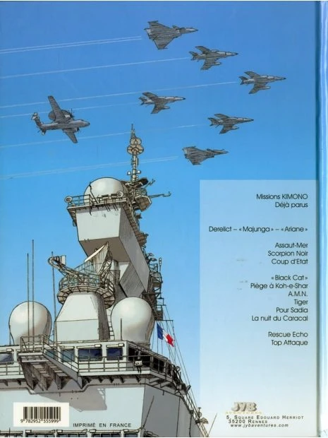 La série Missions Kimono raconte les aventures de pilotes de la 11e Flottille de chasse embarquée, basée à terre ou sur le porte-avions Clémenceau (pour les premiers épisodes) et Charles de Gaulle (à partir de l’album n°5).