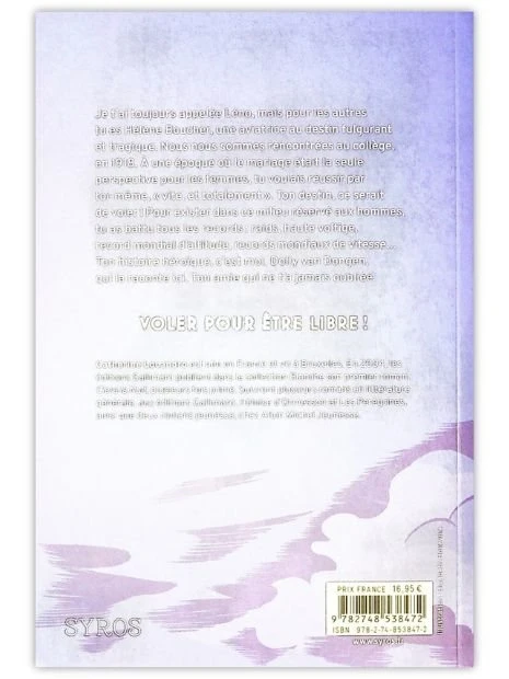 Je t’ai toujours appelée Léno, mais pour les autres tu es Hélène BOUCHER, une aviatrice au destin fulgurant et tragique. Nous nous sommes rencontrées au collège, en 1918. À une époque où le mariage était la seule perspective pour les femmes, tu voulais réussir par toi-même, « vite, et totalement ». Ton destin, ce serait de voler ! Pour exister dans ce milieu réservé aux hommes, tu as battu tous les records : raids, haute voltige, record mondial d’altitude, records mondiaux de vitesse… Ton histoire héroïque, c’est moi, Dolly VAN DONGEN, qui la raconte ici. Ton amie qui ne t’a jamais oubliée.