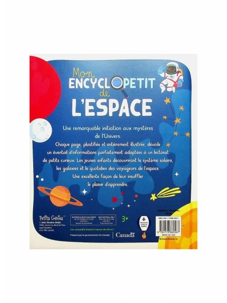 Une encyclopédie de 48 pages pour les tout-petits, dans laquelle ils apprendront un tas d’informations sur l’espace ! Les planètes, le métier d’astronaute et les événements qui ont marqué notre histoire n’auront plus de secrets pour eux !