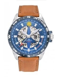 La découpe d’un Alphajet sur le cadran de la montre A8-100ED-668109 fait écho aux avions profilés de la PAF. Cette montre de haute voltige laisse entrevoir son mouvement automatique 21 rubis ; un mécanisme pour avoir toujours un coup d’avance.
