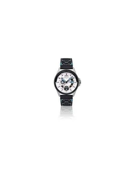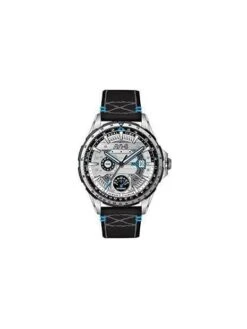 Nommé d’après le célèbre pilote d’essai de Hawker Harrier, John FARLEY, ce garde-temps fait écho au cockpit intérieur de l’avion emblématique « Jump Jet » avec un affichage rétrograde à double fuseau horaire, la date et une lecture sur 24 heures, le tout dissimulé dans le boîtier robuste, mais facile à porter.