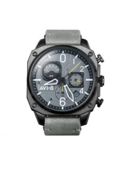 Bien attaché au poignet avec un bracelet en cuir véritable vintage cousu à la main, le chronographe rétrograde Hawker Hunter est une montre impressionnante, fonctionnelle et unique inspirée de l’aviation comme aucune autre.