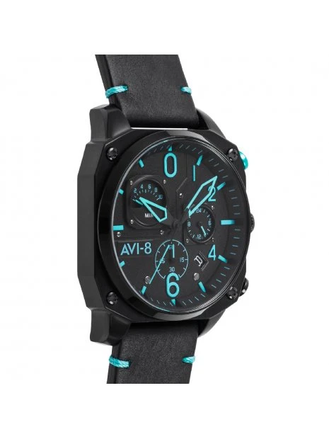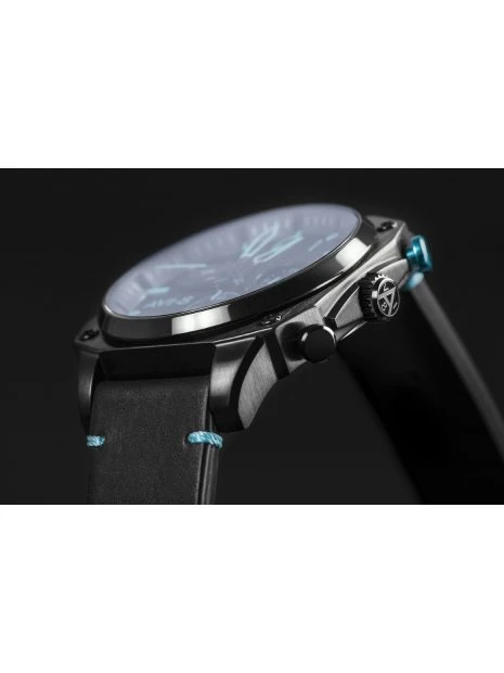 Bien attaché au poignet avec un bracelet en cuir véritable vintage cousu à la main, le chronographe rétrograde Hawker Hunter est une montre impressionnante, fonctionnelle et unique inspirée de l’aviation comme aucune autre.