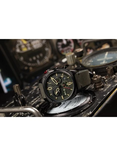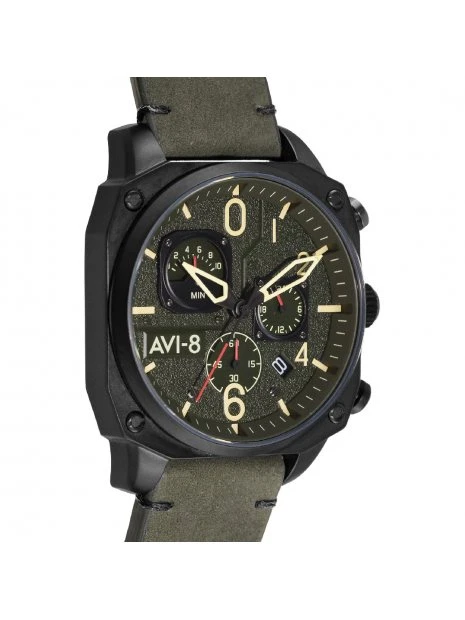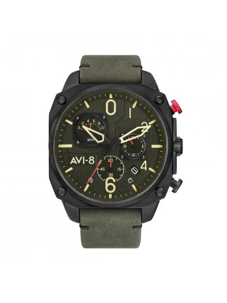 Bien attaché au poignet avec un bracelet en cuir véritable vintage cousu à la main, le chronographe rétrograde Hawker Hunter est une montre impressionnante, fonctionnelle et unique inspirée de l’aviation comme aucune autre.