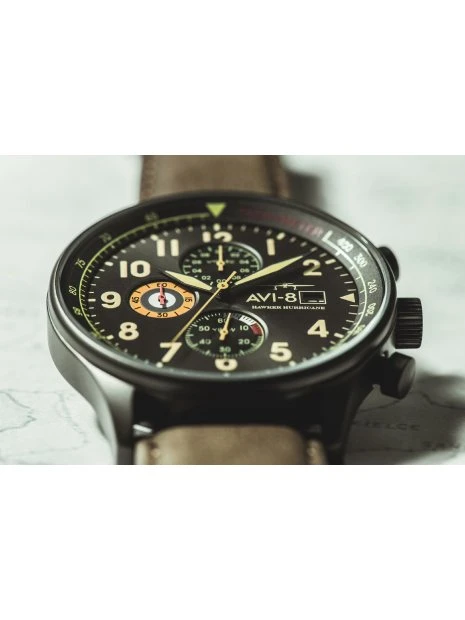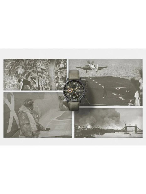 Un hommage à l’avion sans doute le plus emblématique de la Seconde Guerre mondiale. Le Hawker Hurricane Classic Chronograph se caractérise par une simplicité qui fait écho au design de son homonyme. Des lignes épurées et audacieuses entourent le cadran sur lequel les couleurs et les graphismes célèbrent le motif simple mais frappant de l’avion de chasse qui a identifié le Hawker Hurricane.