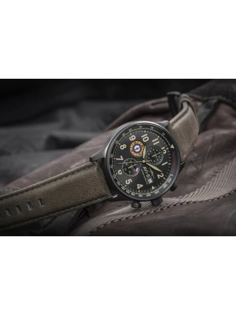 Le chronographe classique inspiré de l’aviation. Les lignes de forme du boîtier classiques abritent des cadrans, des couleurs et des graphismes détaillés qui célèbrent l’esprit et l’aventurisme d’une époque révolue. L’indexation simple des heures, les aiguilles audacieuses et les sous-cadrans détaillés du chronographe au design vintage sont tous mélangés pour créer une montre au design élégant, précise dans les performances et élégante dans son commentaire sur le porteur.