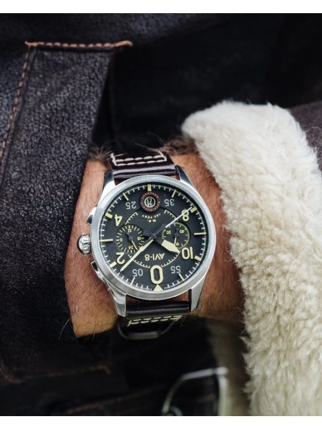 La pièce d’horlogerie est complétée par un bracelet en cuir véritable, confortable et fabriqué à la main, de style pilote vintage, qui se rétrécit de 22 mm à 20 mm.