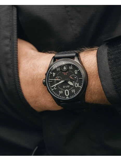 La pièce d’horlogerie est complétée par un bracelet en cuir véritable, confortable et fabriqué à la main, de style pilote vintage, qui se rétrécit de 22 mm à 20 mm.