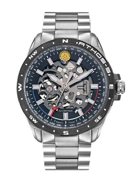 Cette Montre Automatique Acier Cadran Noir A5-100PRS-668117 s’identifie à l’un des pilotes les plus expérimentés de la Patrouille de France. En tant que Premier Solo Athos 5 joue le rôle de leader du box arrière.