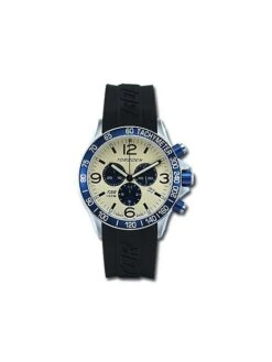 Montre à quartz de mouvement suisse, spécialement conçue pour les aviateurs, étanche jusqu’à 100 mètres, avec boîtier en acier inoxydable, cadran ivoire et bracelet caoutchouc noir.